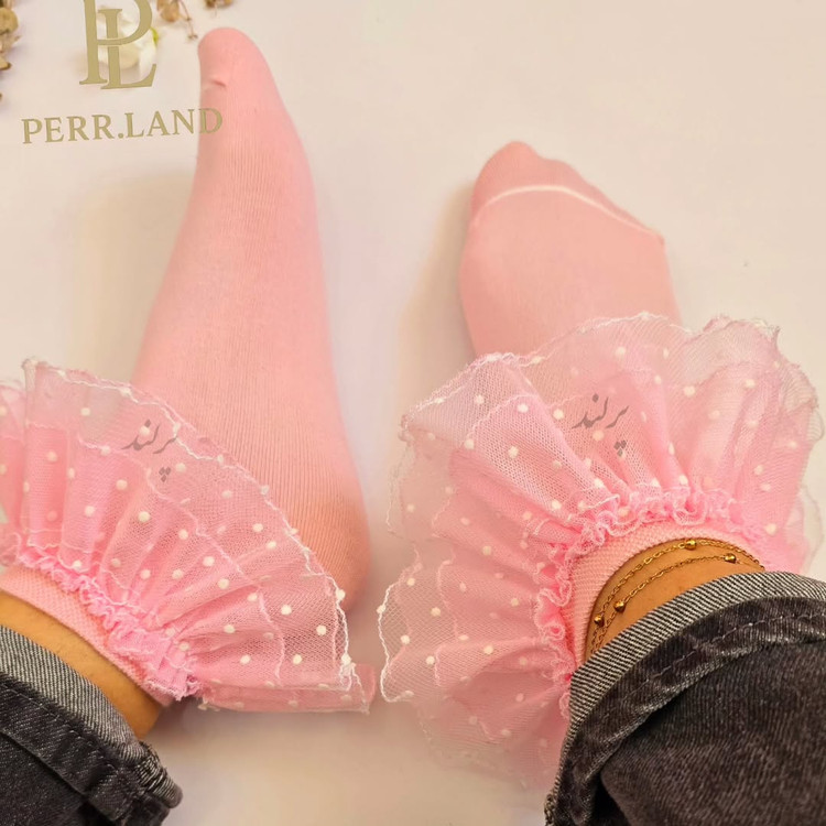 جوراب صورتی زنانه سه لایه تور خالخالی
