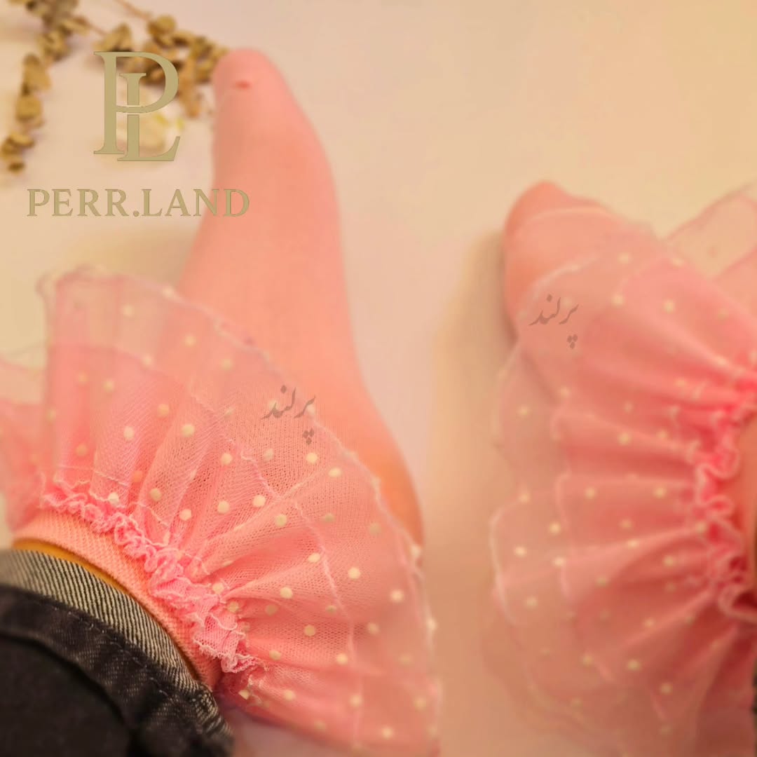 جوراب صورتی زنانه سه لایه تور خالخالی