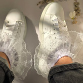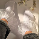 جوراب لبتوری سفید با خالخالی های نقره ای