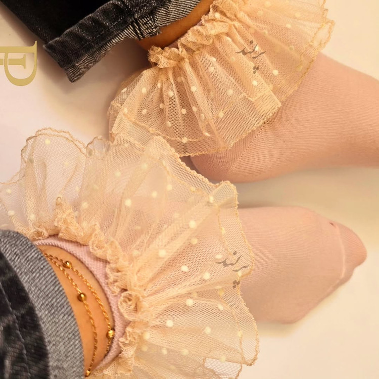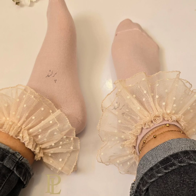 این جوراب لبتوری کرمی با خالهای مخملی، استایلی ملایم و رویایی را به شما هدیه میدهد. انتخابی که هیچوقت از مد نمیافتد.