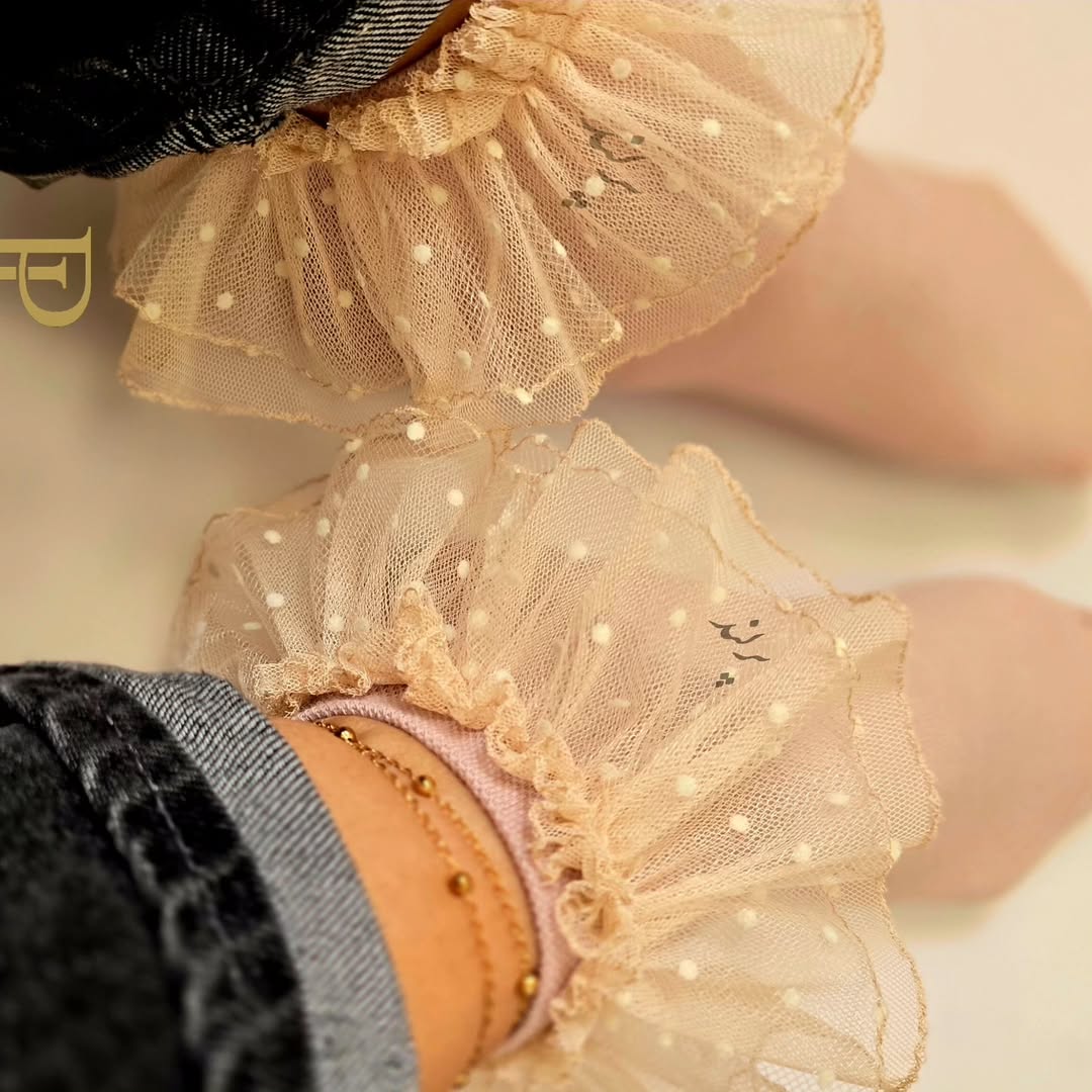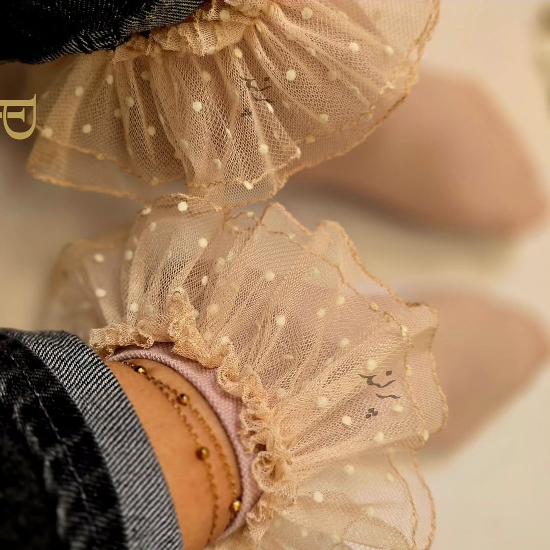این جوراب لبتوری کرمی با خالهای مخملی، استایلی ملایم و رویایی را به شما هدیه میدهد. انتخابی که هیچوقت از مد نمیافتد.