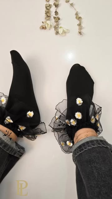 جورابهای لب توری مشکی با گلهای ظریف و طراحی خاص، ترکیبی از لطافت و استایل منحصربهفرد.