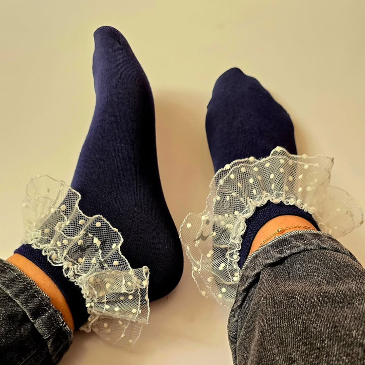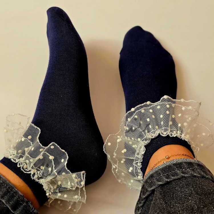 جورابهای شیک با طرح توری و مرواریدی که استایل شما رو به اوج جذابیت میرسونه.