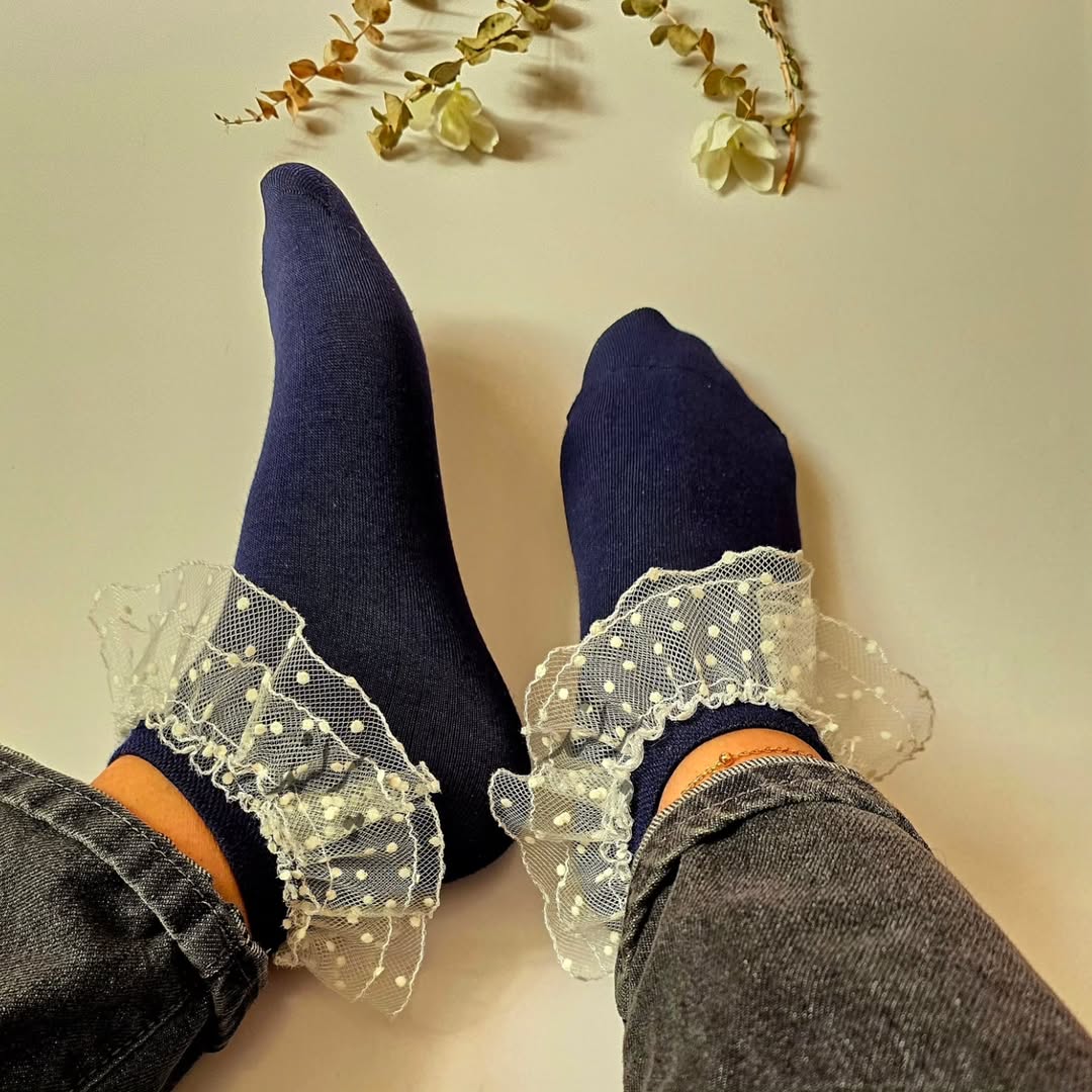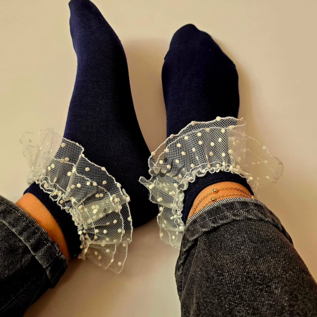 جورابهای شیک با طرح توری و مرواریدی که استایل شما رو به اوج جذابیت میرسونه.