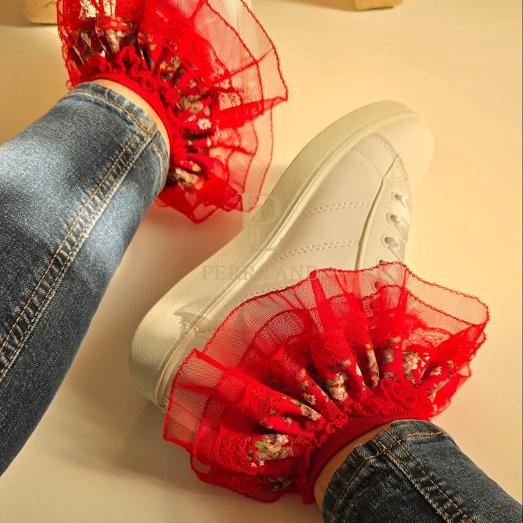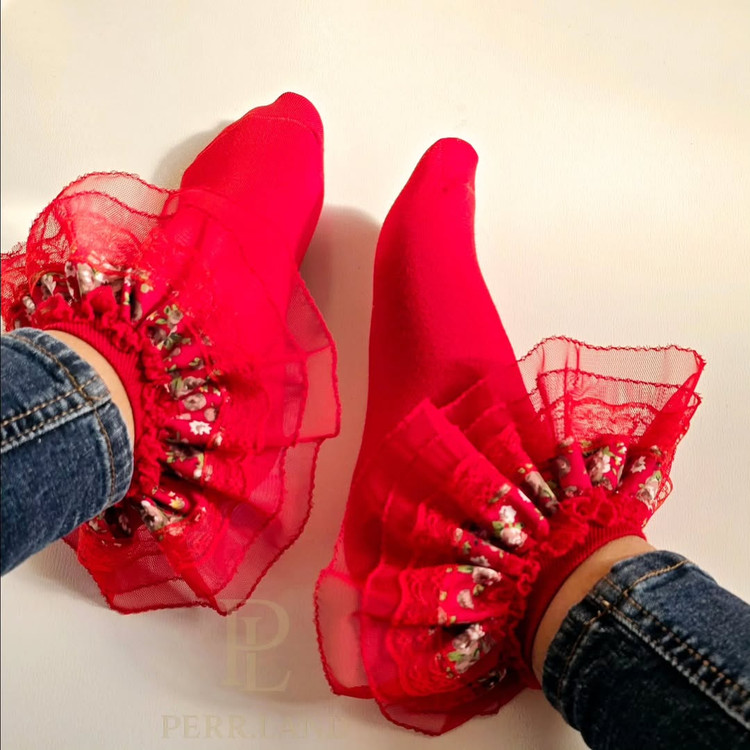 جوراب های نوستالژی پرلند جوری طراحی و دوخت میشن که مناسب همه ی فصل باشه این طرح قرمز گلدار اول واسه یلدا طراحی کردیم دیدیم خیلی مناسب استایل های روز مره با دامن هم میشه و از همه مهمتر مناسب استایل بهاره هم هست پس شما با یک انتخاب میتونید همه جوره ازش لذت ببرید.