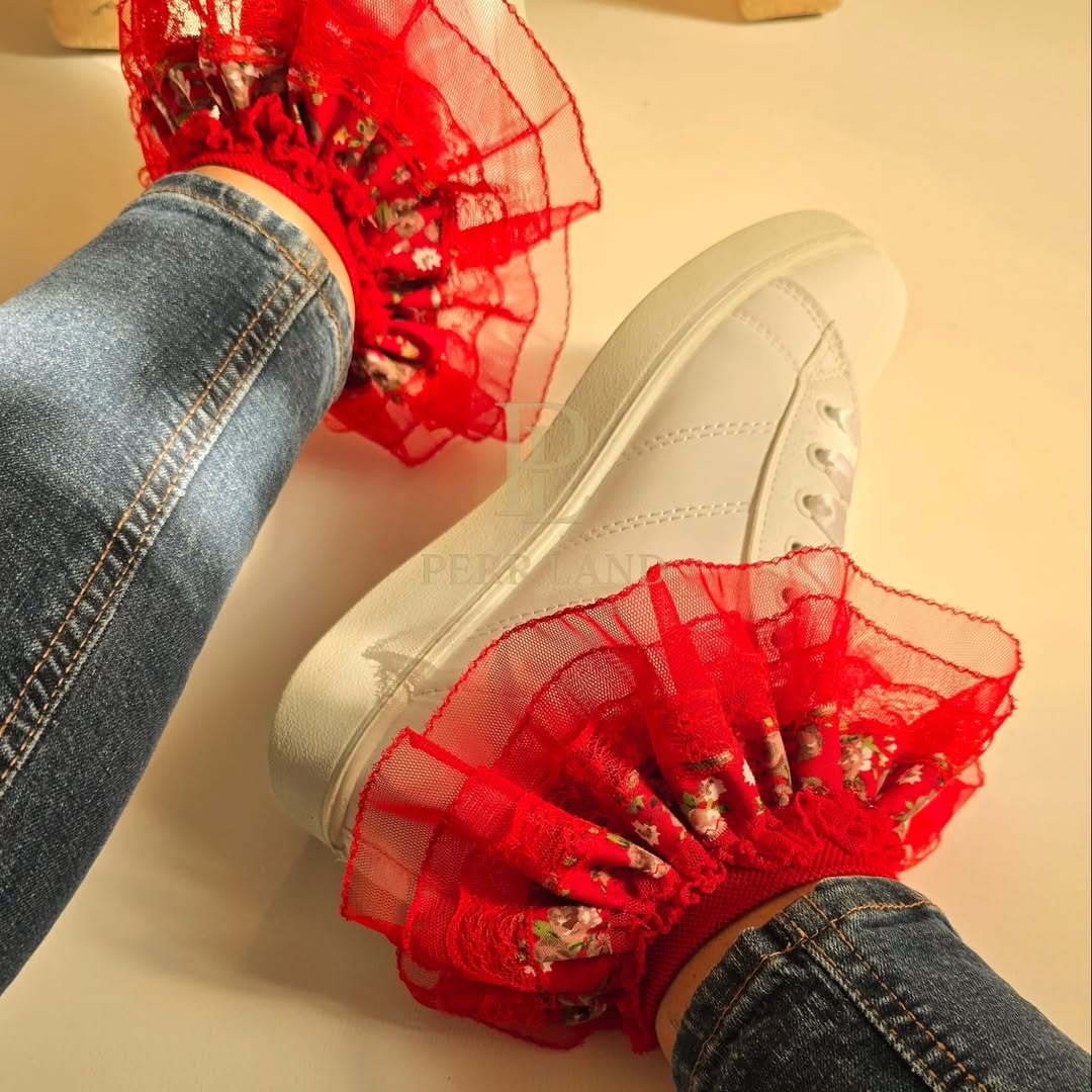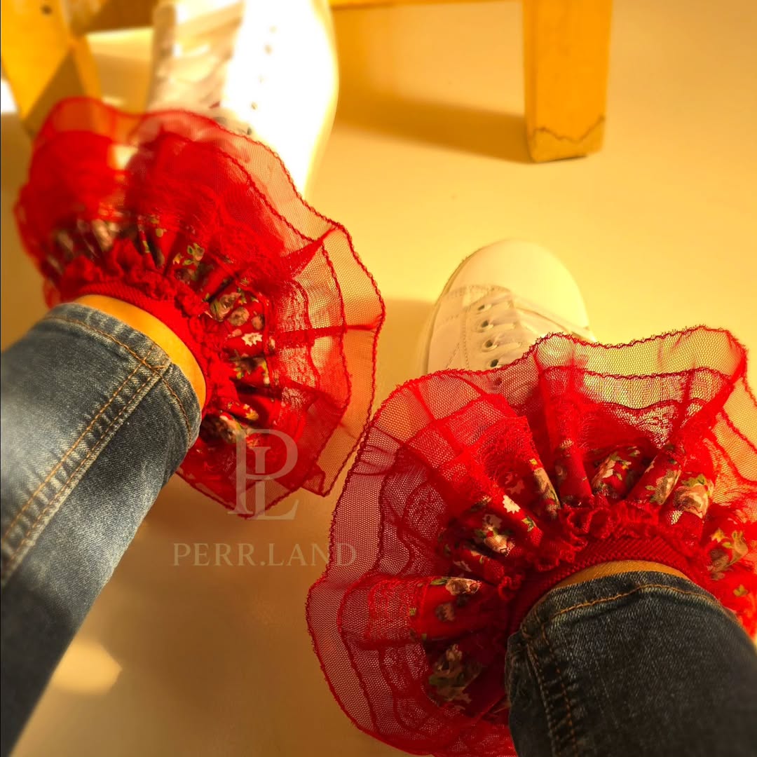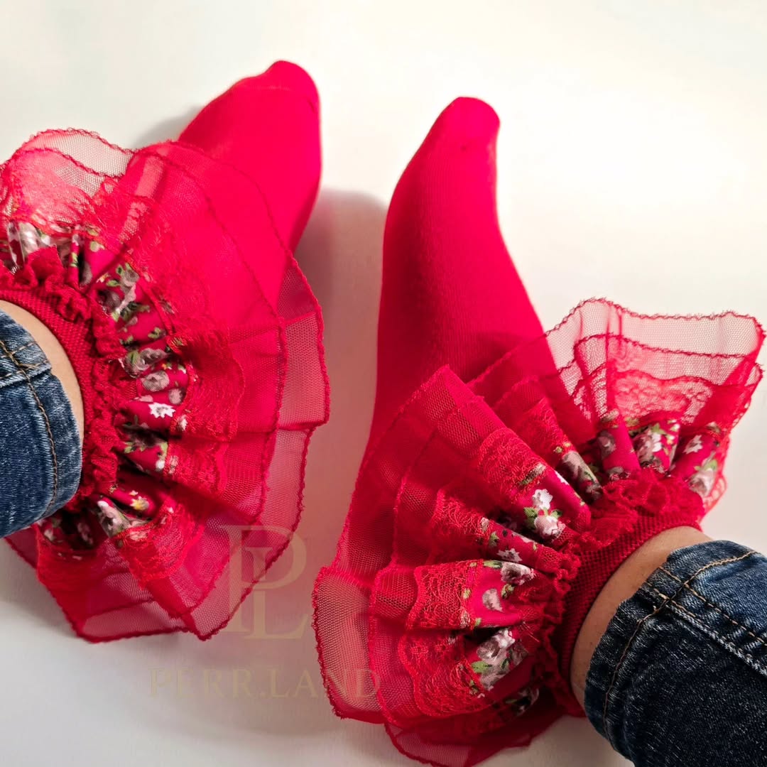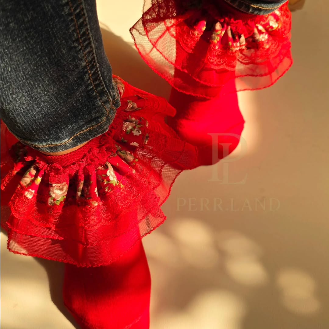 جوراب های نوستالژی پرلند جوری طراحی و دوخت میشن که مناسب همه ی فصل باشه این طرح قرمز گلدار اول واسه یلدا طراحی کردیم دیدیم خیلی مناسب استایل های روز مره با دامن هم میشه و از همه مهمتر مناسب استایل بهاره هم هست پس شما با یک انتخاب میتونید همه جوره ازش لذت ببرید.