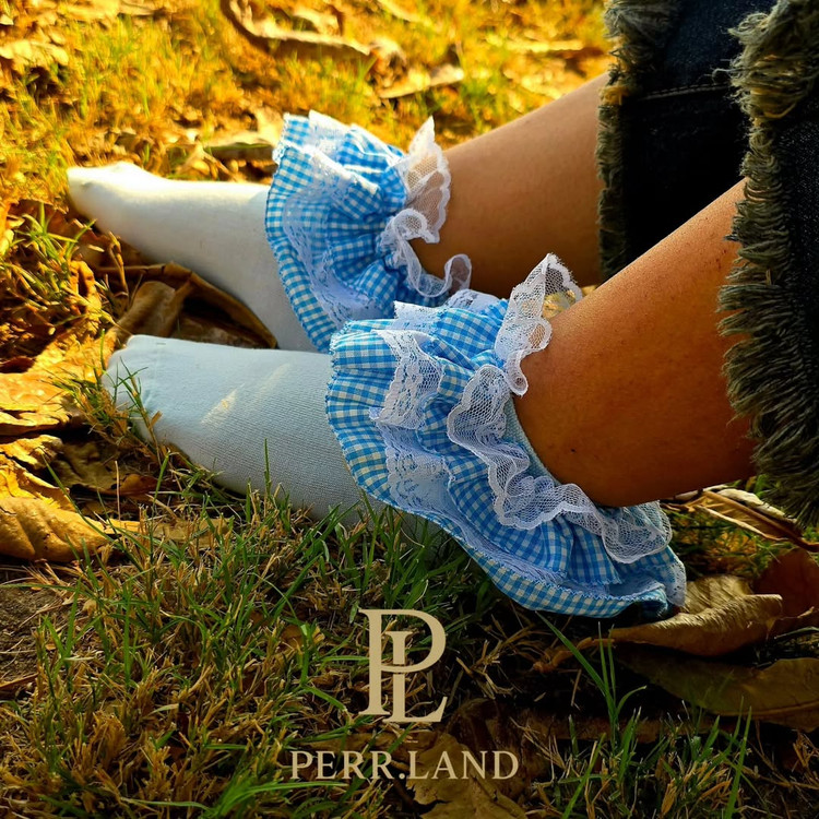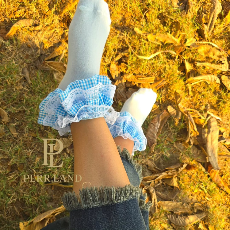 جوراب مچی دخترانه چهارخانه ابی