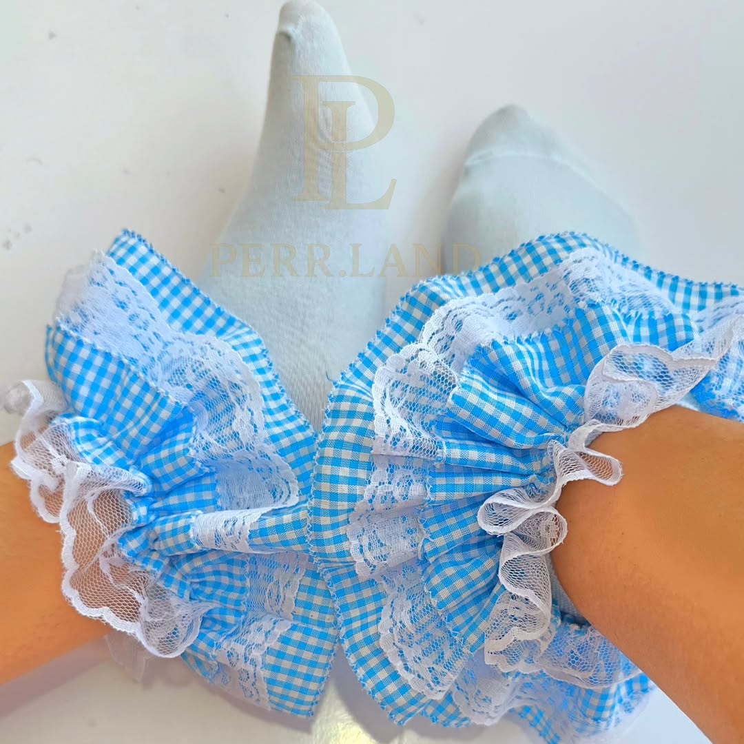 جوراب مچی دخترانه چهارخانه ابی